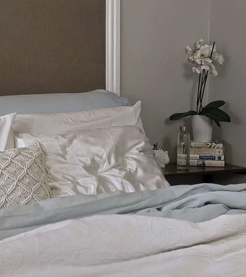 Připadá vám ráno váš obličej trochu „pomačkaný“? Možná známe viníka – polštář. Části obličeje zabořené do polštáře jsou vystaveny většímu riziku vzniku vrásek. Řešením je saténové ložní prádlo. Tato látka je jemnější a na obličej se „neobtiskne“.